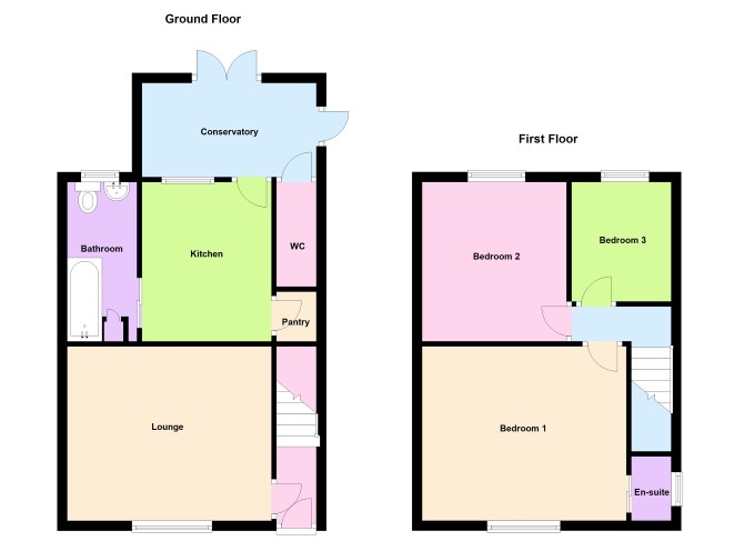 Ground Floor: Entrance Hallway having wall mounted electric storage heater. Lounge 4.1m x 3.5m with uPVC bay window and open fire with fireplace, wall mounted electric storage heaters. Kitchen 2.61m x 3.2m with pantry storage cupboard, single glazed window. Bathroom 1.33m x 3.2m with a three piece suite, electric shower over bath, uPVC double glazed window and airing cupboard housing the hot water cylinder. A door from the kitchen leads to the rear Conservatory with two doors giving access to the rear garden, separate door to the Ground Floor WC. First Floor: Bedroom One 4.1m x 3.66m with uPVC double glazed window and wall mounted electric storage heaters. En Suite 0.97m x 1.29m with w/c and wash hand basin. Bedroom Two 2.91 x 3.11m with uPVC double glazed window, wall mounted electric storage heater. Bedroom Three 2.1m x 2.1m with uPVC double glazed window.