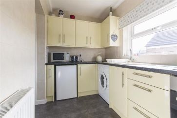 A uPVC entrance porch leads through to the kitchen, 2.97m x 1.83m (maximum overall dimensions), having a range of high gloss base and wall units, complementary work surfaces and tiled splash backs, ceramic sink with integrated oven, together with space and plumbing for a washing machine and space for a fridge. Lounge, 6.05m x 3.38m (maximum overall dimensions), having feature fireplace with electric fire and wood fire surround, together with a staircase leading to the attic area, and access to the rear garden.