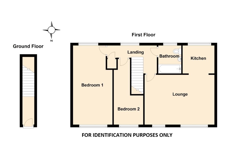 FIRST FLOOR Living/ dining area: 17 ft 4 in x 12 ft 2 in Kitchen: 6 ft 11 in max x 7 ft 10 in max Bedroom 1: 13 ft 6 in max x 7 ft 3 in max Bedroom 2: 19ft 5 in x 9 ft 8 in max Bathroom: