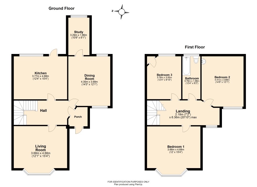 GROUND FLOOR Porch: Hallway: Reception room 1: 15 ft 1 in max x 14 ft 11 in max Reception room 2: 14 ft x 11 ft 11 in max Study: 10 ft 8 in x 5 ft 11 in Kitchen: 14 ft 7 in x 12 ft FIRST FLOOR Bedroom 1: 15 ft 2 in max x 15 ft max Bedroom 2 and sink: 14 ft 3 in x 11 ft 11 in max Bedroom 3: 12 ft x 9 ft Bathroom: