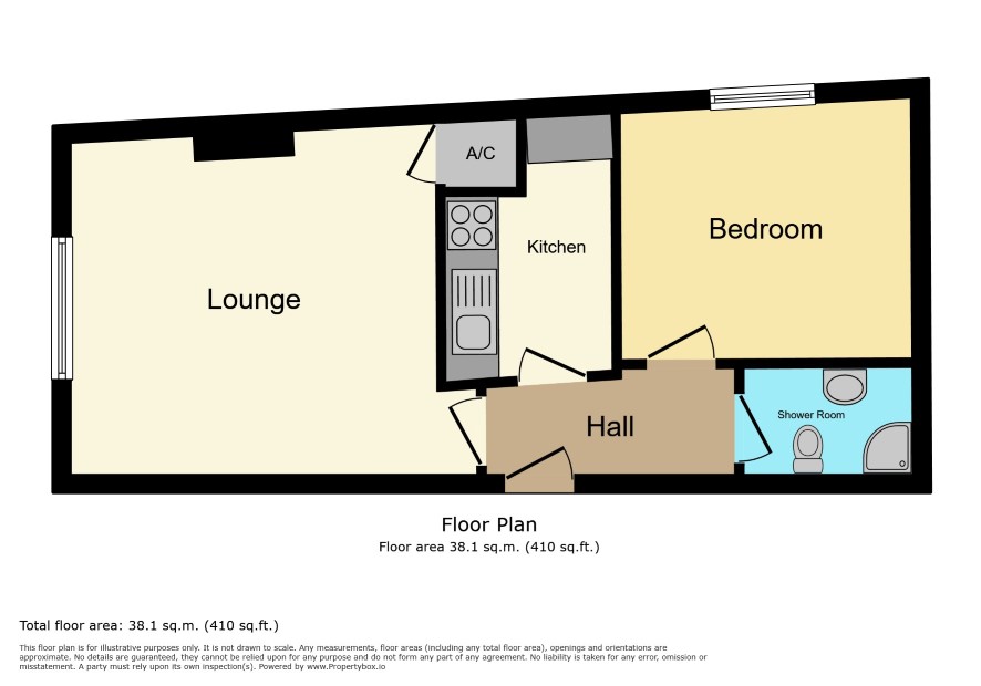 Hallway: Kitchen: 9 ft 11 max x 4 ft 11 in max Lounge: 11 ft 10 in max x 11ft 9 in Bedroom: 10 ft 6 in x 9 ft 1 in Shower room: