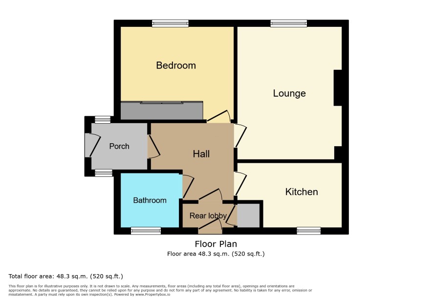 Porch Hallway Lounge: 14 ft 2 in x 11 ft 2 in max Kitchen: 11 ft 2 in x 6 ft 11 in Bedroom: 11 ft 8 in x 10 ft 9 in Bathroom Rear lobby