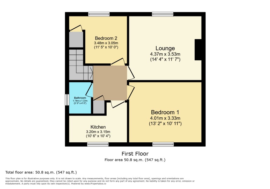FIRST FLOOR Lounge: 14 ft 4 in x 11 ft 7 in Bedroom 1: 13 ft 2 in x 10 ft 11 in Bedroom 2: 11 ft 5 in max x 10 ft max Kitchen: 10 ft 6 x 10 ft max Bathroom:
