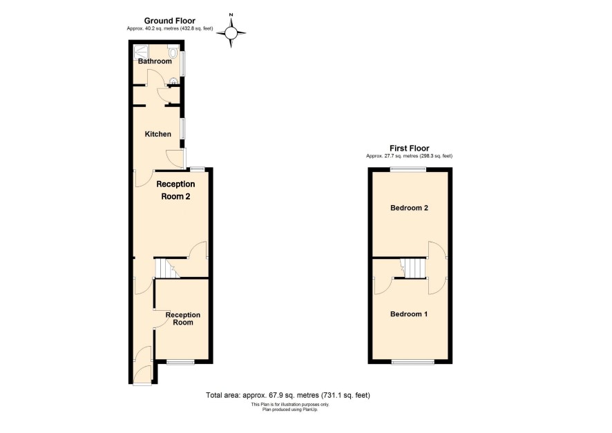 GROUND FLOOR Porch: Hallway: Reception room 1: 11 ft 8 in x 7 ft 9 in max Reception room 2: 12 ft 2 in x 11 ft 2 in Kitchen: 9 ft 3 in x 6 ft 10 in Shower room: Lean-to: FIRST FLOOR Bedroom 1: 11 ft 7 in x 11 ft 1 in Bedroom 2: 12 ft 2 in x 9 ft 11 in