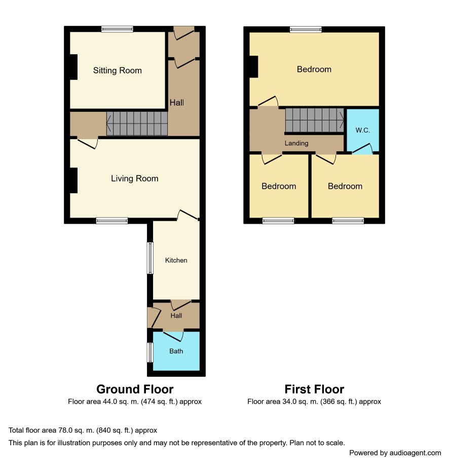 Vestibule; Hall with stairs off; Front Sitting Room - 10'9 x 10'6; Living Room - 14'3 x 11'3; Kitchen - 13'6 x 7'3 with range of units; Lobby - with outer door; Bathroom - 7'3 x 6' with bath, basin and WC.
