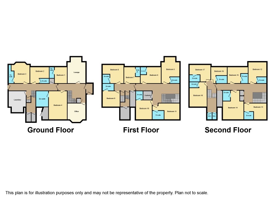 Porch, entrance hall with reception, office, residents lounge, laundry room and 4 en-suite bedrooms