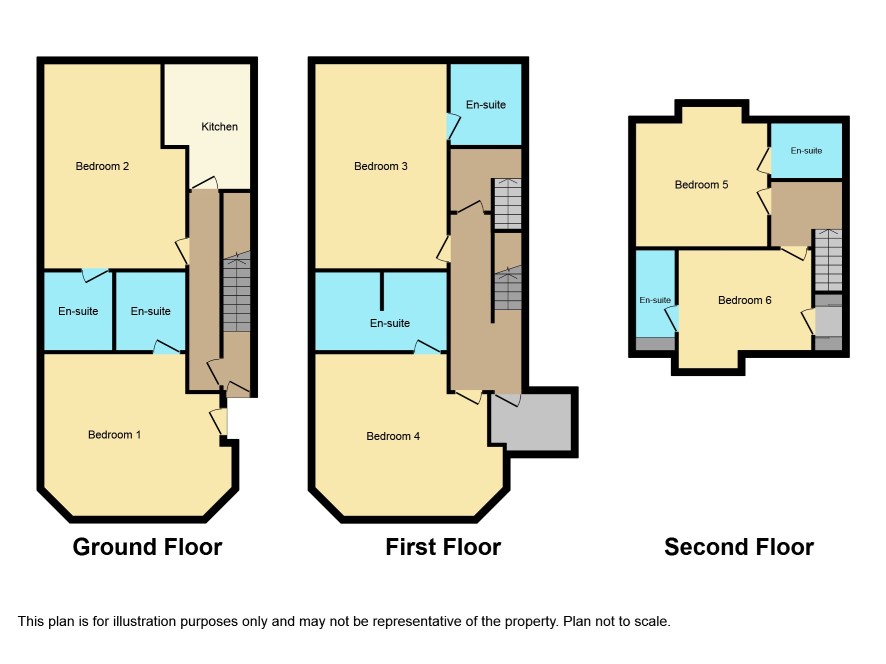 3 storey terraced property with 6 en-suite bedrooms