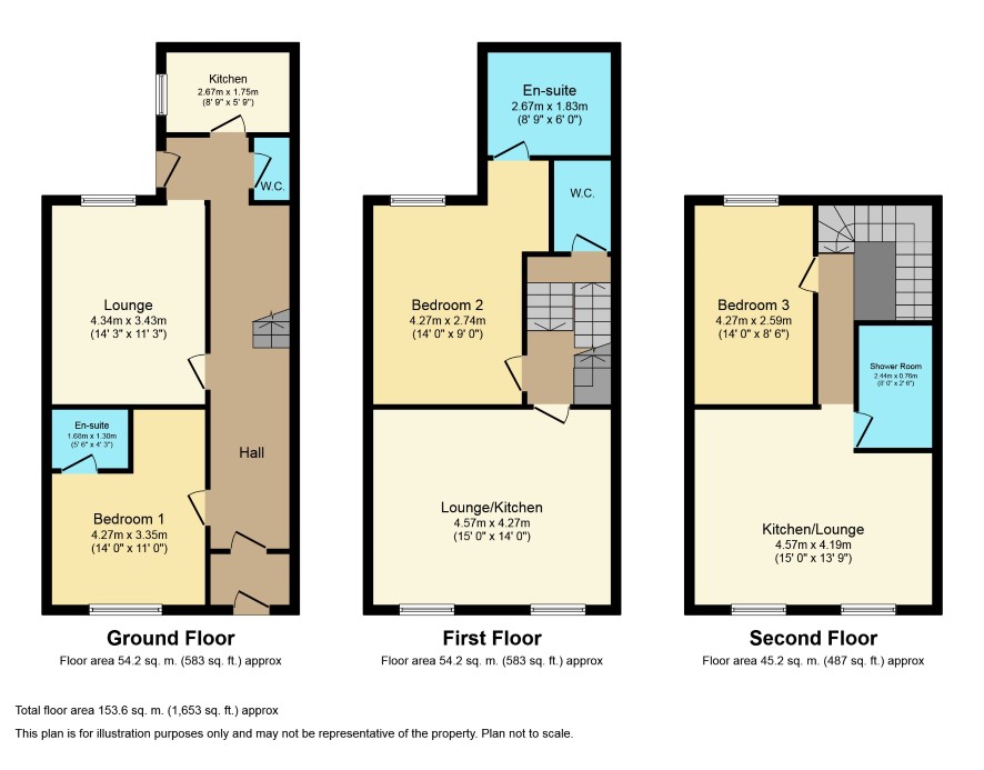 Vestibule/Hall Lounge 14'3 x 11'3 Bedroom 14' x 11' En-suite 5'6 x 4'3 Kitchen 8'9 x 5'9 WC