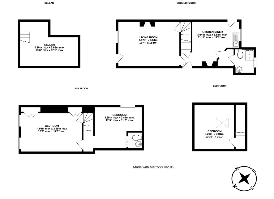 Ground Floor Porch - 12'9 x 4'9; Hall; Sitting Room - 16' x 11'6; Living Room - 12'3 x 10'6 + recess - with oak wall panelling; Kitchen - 7'9 x 7'9; Cellar - 16'9 x 8' + recess with shelving. First Floor Front Bedroom - 16'3 x 11'6; Rear Bedroom - 10'3 x 9'6; Shower Room with basin and separate WC. Attic Room - 11'9 x 7'9 with dormer window.
