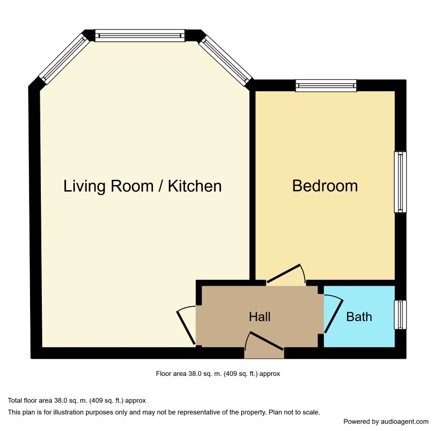 A first floor flat situated on the outskirts of town offering good investment potential with large living room with sea views and kitchen area, bedroom and bathroom.