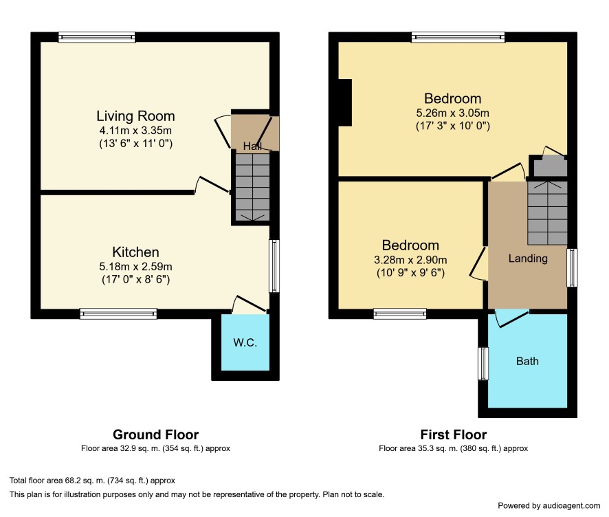 Front and rear gardens. Outside WC.