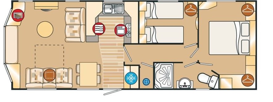 Static caravan in a small cluster of chalets and statics in this popular village on the Solway coast between Silloth and Maryport. Situated just across the road from the beach at Allonby with spectacular views over the Solway Firth to Criffel in Dumfries and Galloway. This is a Willerby Home, Salisbury design approx. 35' x 12'.