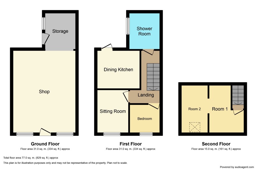with access from rear yard via external staircase to:- Dining Kitchen - 12'6 x 11'3; Sitting Room - 14'6 x 10'; Front Bedroom - 10'9 x 7'3; Shower Room - 11'6 x 9'3 with shower, basin and WC; Attic Room 1 - 13'6 x 9' leading through to:- Attic Room 2 - 17'6 x 7' overall.