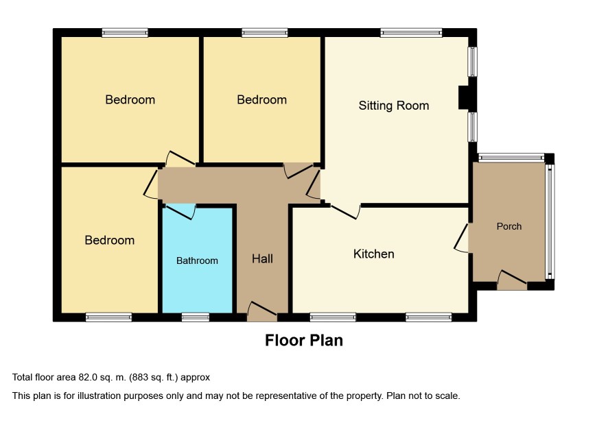 A spacious, three bedroomed, semi-detached bungalow occupying a pleasant position. In need of modernisation but offering great potential with hall, sitting room, dining kitchen, porch, three bedrooms, bathroom, useful cellar rooms and full length loft. Front and rear gardens.