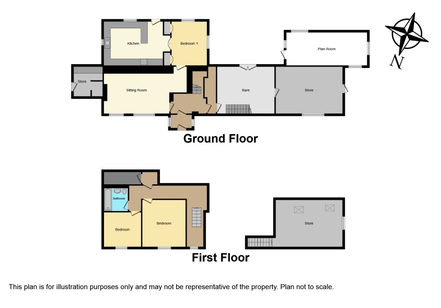Porch with timber front door, stone floor and fitted bench Hall with staircase to the first floor, door to barn, door to sitting room Sitting Room 22' x 16'5 with multi fuel stove with stone surround Dining Room 12'6 x 12'2 with double doors to the kitchen Kitchen 16'5 x 11'6 with a range of wall and base units, stable door the garden