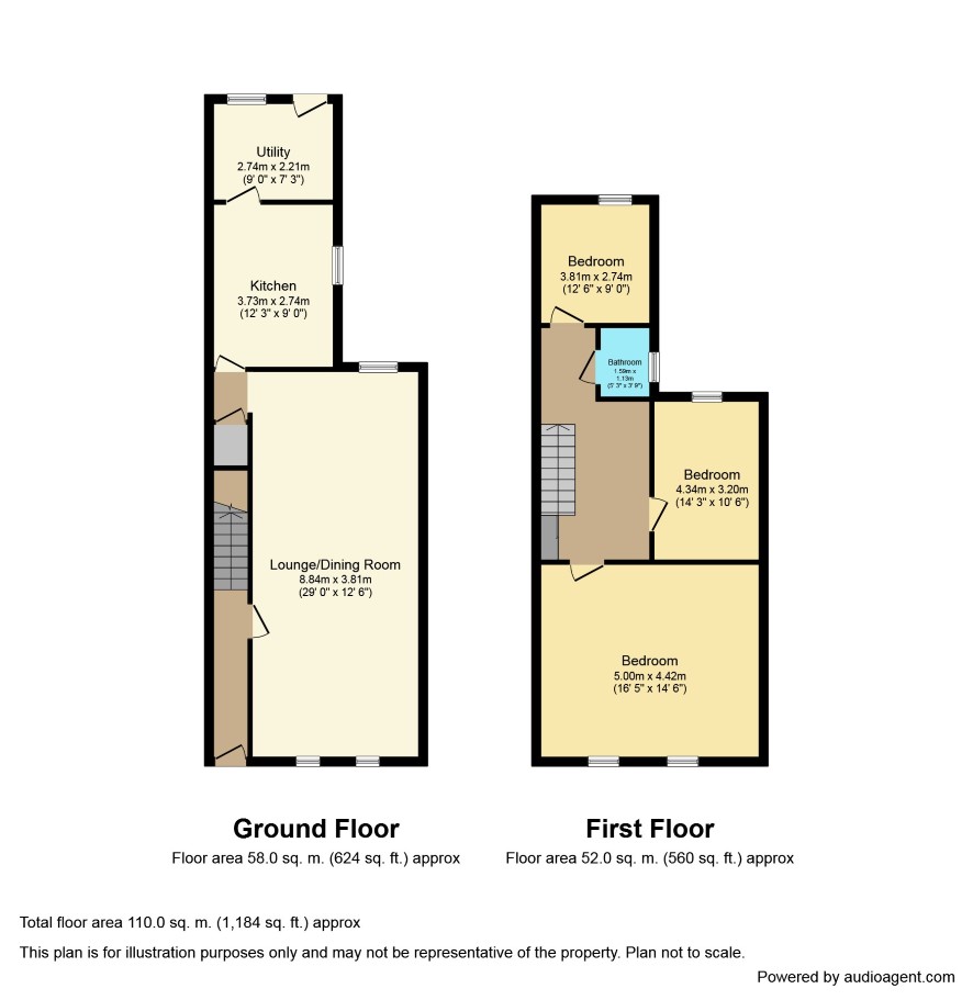 Entrance Hall Lounge/Dining Room 29' x 12'6 Kitchen 12'3 x 9' Utility Room 9' x 7'3