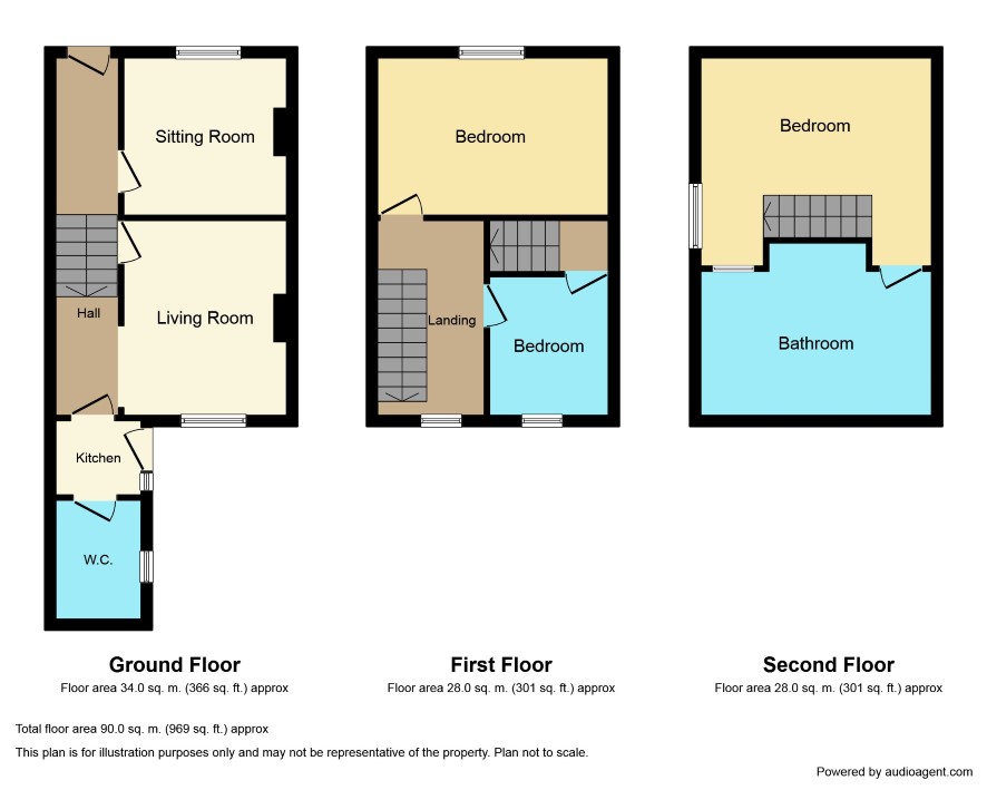A three storey end of terrace house with rear garden situated in a popular residential area. The property is in need of a thorough programme of modernisation but offers tremendous potential with hall, two reception rooms, kitchen and provision for bathroom downstairs, two bedrooms on the first floor and a third attic room leading into a bathroom on the top floor. Rear yard with separate garden beyond lane.