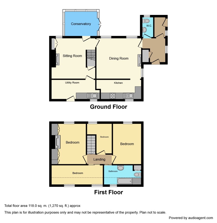 Landing; Bedroom 1 - 13'3 x 10'6; Bedroom 2 - 13'6 x 10'; Bedroom 3 - 16'6 x 6'3; Bedroom 4 - 9'9 x 5' + recess; Bathroom - 13'6 x 6'.