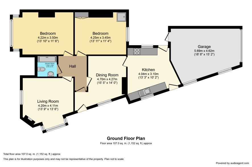 Ground floor flat with 2 reception rooms and 2 bedrooms