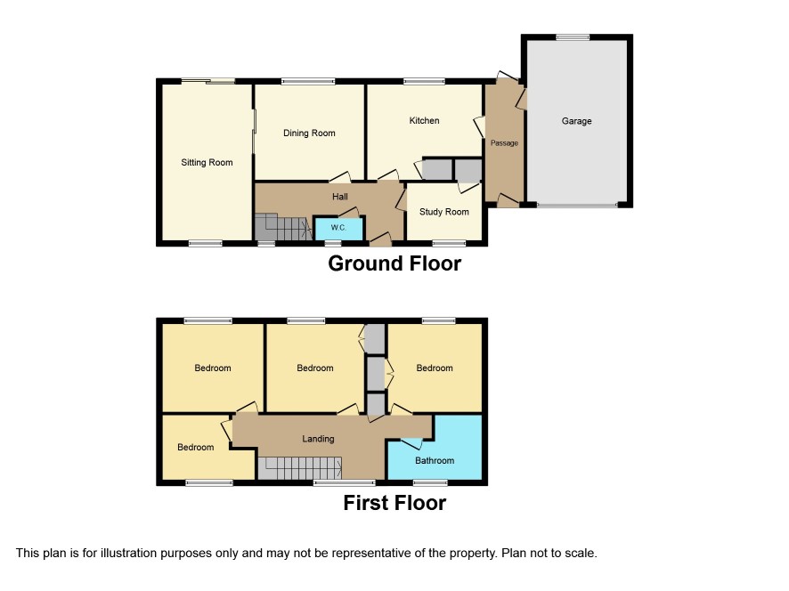 Entrance Hall; Cloakroom with WC and basin; Study - 8' x 7'6; Sitting Room - 19'3 x 11'3 with patio doors to rear garden; Dining Room - 11'3 x 10'9; Kitchen - 11'3 x 8' with door to side passage with access to garage.