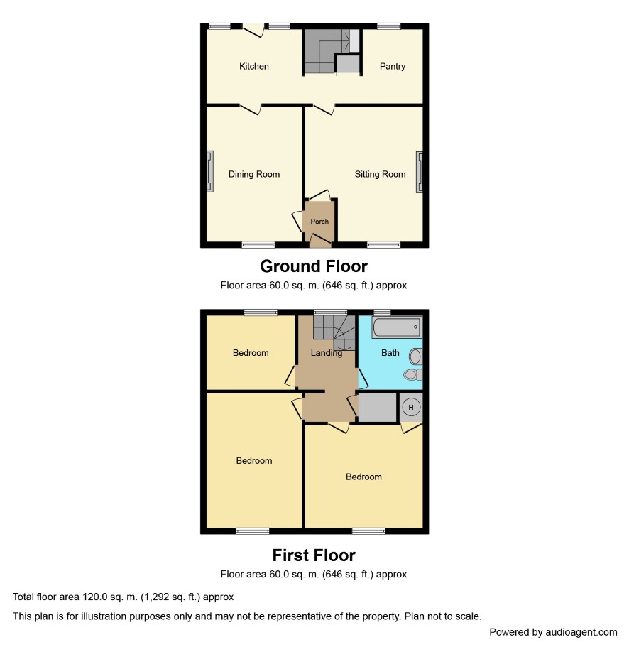 Landing; Front Bedroom - 15' x 14'; Front Bedroom - 14' x 11'9; Rear Bedroom - 12'3 x 7'9; Bathroom - 7'6 x 6'.