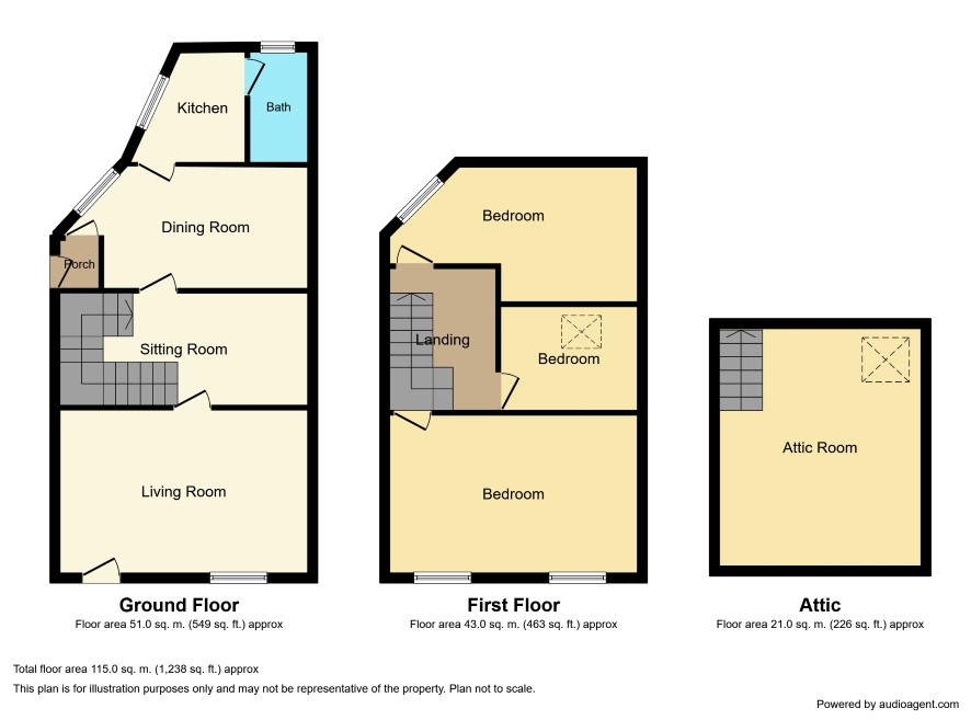 A spacious terraced house with enclosed rear yard near the town centre. A good investment property with three reception rooms, kitchen, bathoom, cellar, three bedrooms, useful attic room and enclosed rear yard.