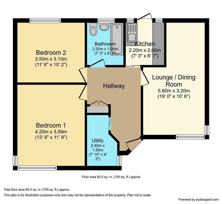 Located in a popular residential area close to all local amenities. In need of some updating, the property comprises: hallway, lounge/dining room, kitchen, bathroom and two bedrooms. Gardens to the front and rear and driveway.