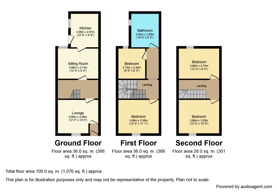 Inner Vestibule Lounge 12' x 10' Sitting Room 12' x 9' Kitchen 9'9 x 6'