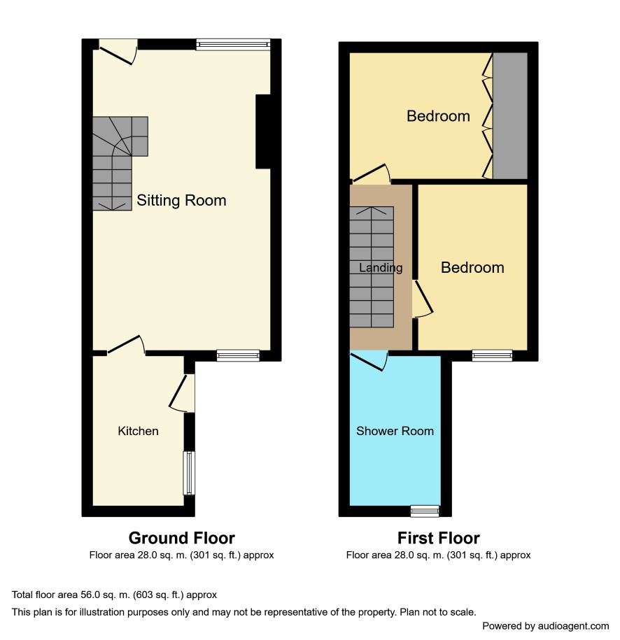 A terraced house with pleasant front garden and open aspect. The property is in need of some modernisation but offers great potential and has a 24' reception room, two bedrooms and first floor bathroom.