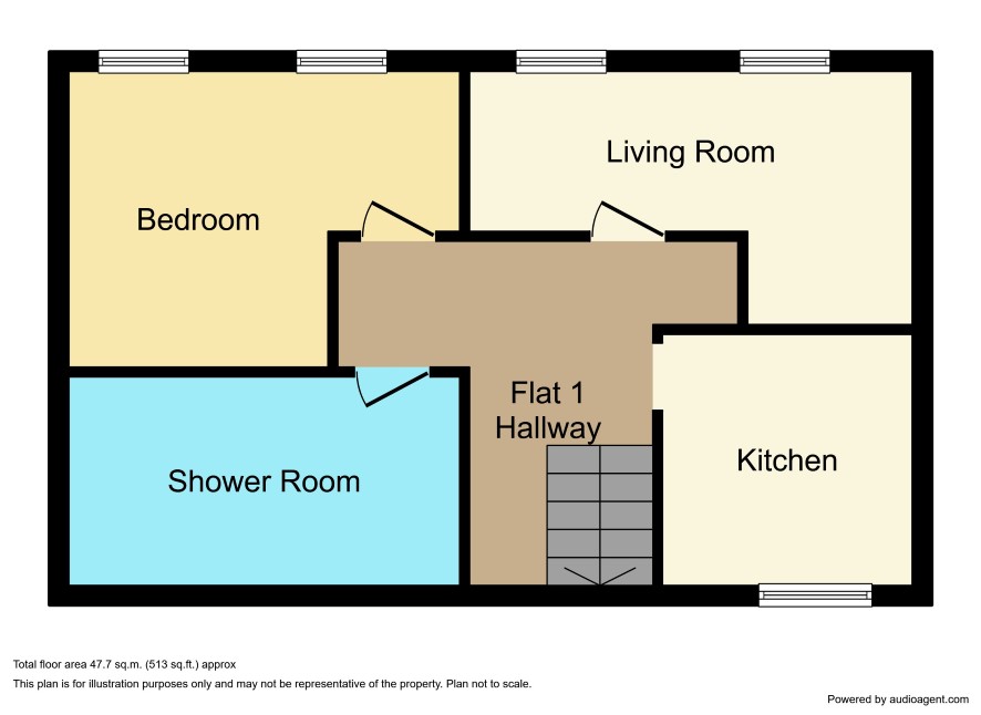 Hall; Living Room - 16' x 11'9 + recess; Kitchen - 10'3 x 8'6; Bedroom - 16'3 x 12' + recess; Shower Room - 12' x 8'3 with basin and WC;