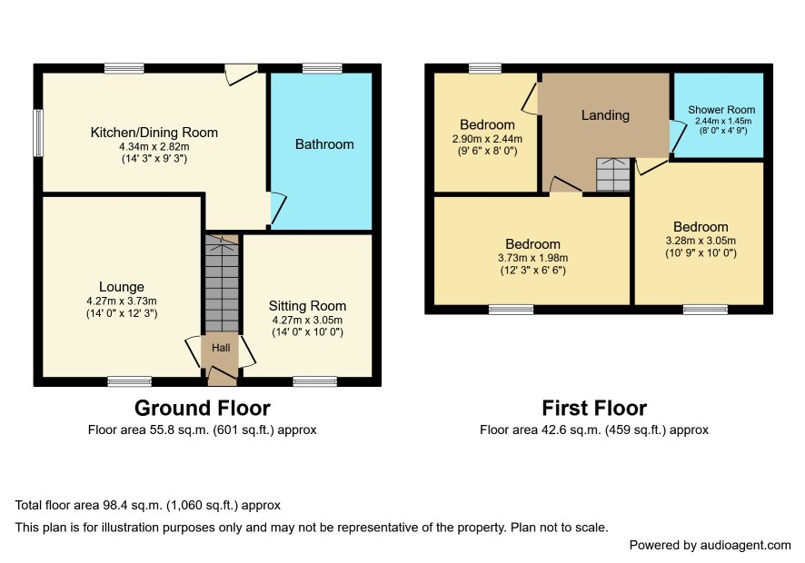 Entrance Hall with stairs to the first floor Sitting Room 14' x 10' Lounge 14' x 12'3 Dining Kitchen 14'3 x 9'3 Bathroom 9'3 x 8'