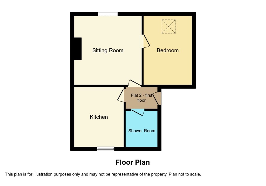 Hall; Sitting Room - 12'9 x 11'9; Bedroom - 13'3 x 8'6; Kitchen - 13'9 x 6'9; Shower Room - 5'6 x 5'.