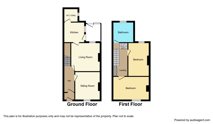 Vestibule Hallway with stairs off; Sitting Room 13' x 11'9 Living Room 15' x 12'6 Kitchen 8'6 x 7' Utility Room/ WC 6'9 x 5'6 Porch 7'6 x 7'