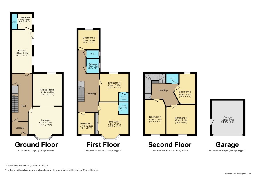 Bedroom Five 12'6 x 9' Bedroom Six 12'6 x 9' Bedroom Seven 12'6 x 9'3 Separate WC