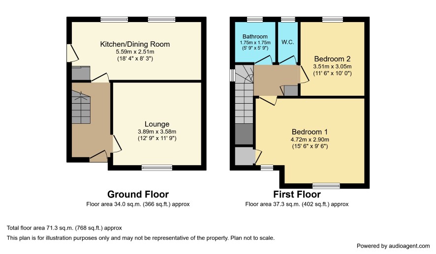 Two bedroom semi detached property on a generous corner plot with gas central heating and double glazing. In a ready to move into condition, comprises: hall, lounge and dining kitchen to the ground floor, two bedrooms and bathroom to the first floor. Outside is easily maintained gardens and driveway.