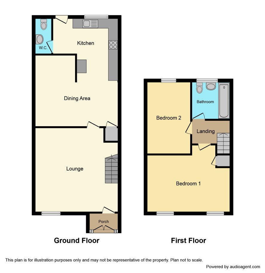 Two bedroom terraced property within walking distance of the town centre and railway station. With front and rear gardens, the property comprises: porch, lounge and dining kitchen to the ground floor, two bedrooms and bathroom to the first floor.