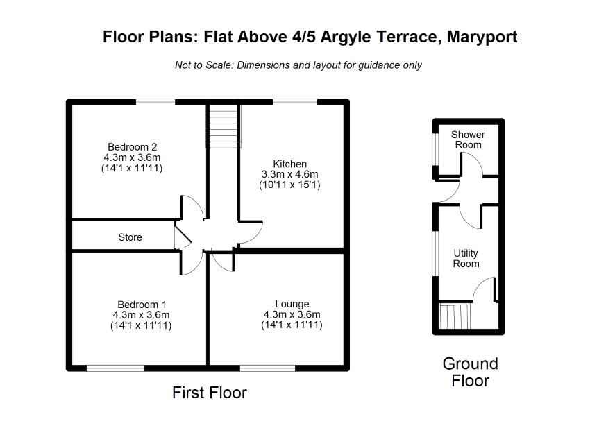 A self contained flat with access from the rear lane. It is let at £600 per month including gas. Ground Floor - Utility Room & Shower Room. First Floor - Lounge - 14' x 12'