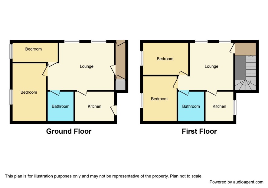 Hall into Lounge Kitchen 10'9 x 5'6 Bedroom 10'6 x 8'9 Bedroom 11'9 x 5'1 Bathroom 6'9 x 5'6
