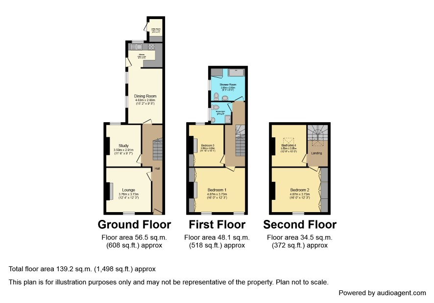 Bedroom 16' x 12'3 Bedroom 10' x 10' Shower Room 9'6 x 9'3 Shower Room 6'4 x 5'6