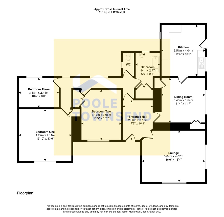 Bedroom One 13'10 x 13'6 Bedroom Two 13' x 10'5 Bedroom Three 10'5 x 8'