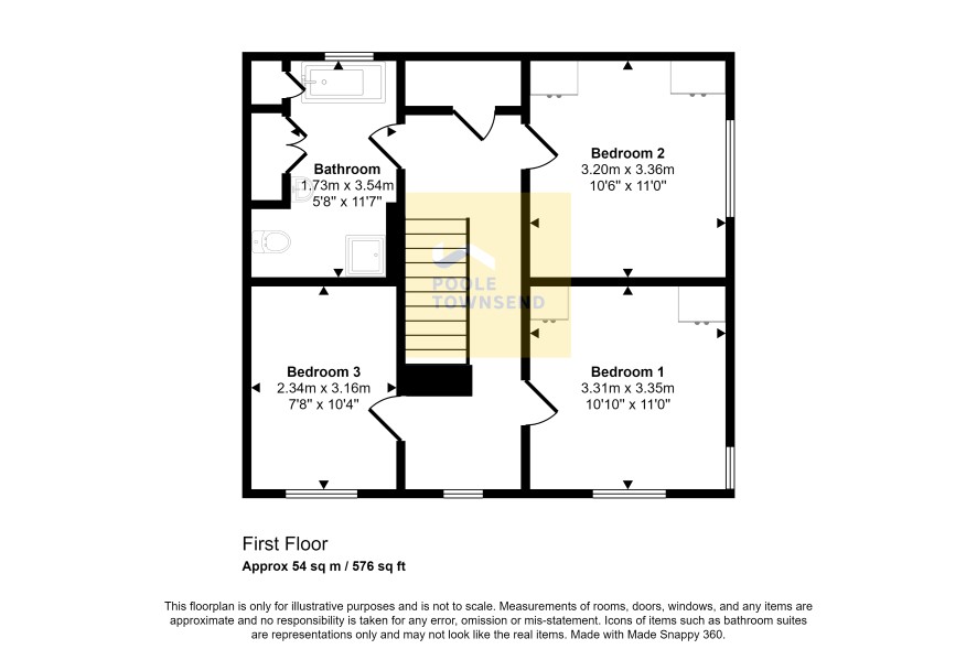 Bedroom One 10'10 x 11' with fitted wardrobe Bedroom Two 10'6 x 11' with fitted wardrobe Bathroom 5'8 x 11'7 with bath, WC wash hand basin and shower enclosure Bedroom Three 7'8 x 10'4