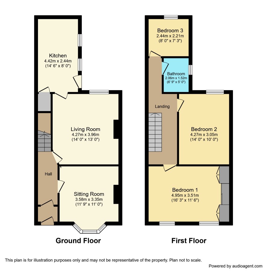 Overgrown gardens to front and rear - see title plan - and narrow driveway to derelict garage.
