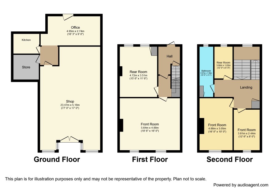 Front Room 16' x 10' Front Room 12'6 x 8' Bathroom 15' x 4'3 Rear Room 12' x 6'