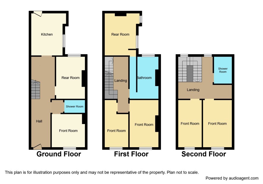 Entrance Hall Front Room 13' x 9'3 Shower Room 9'6 x 4' Rear Room 13'9 x 13'3 Kitchen 17'9 x 10'3 max