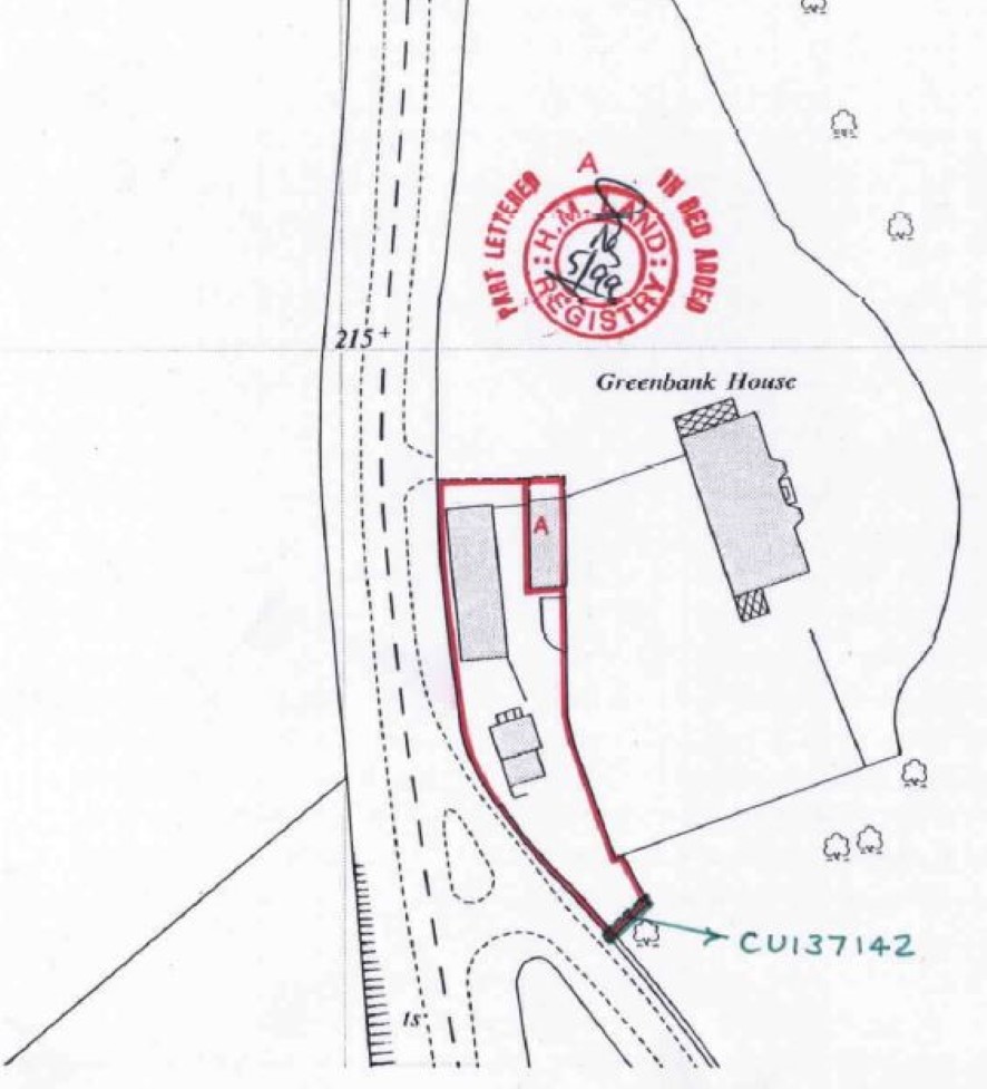 Lawned garden, driveway to detached double Garage - see title plan.