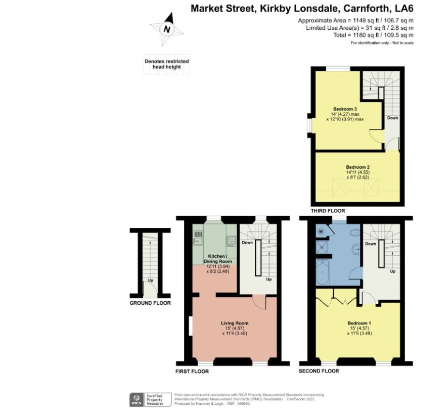 Three bedroom apartment in need of some updating, located in the popular market town of Kirkby Lonsdale. Close to all local amenities and short drive to the Lake District National Park and M6 motorway. Comprises: entrance hall to the ground floor, living room, kitchen / dining room to the first floor, bedroom and bathroom to the second floor, 2 further bedrooms to the third floor.