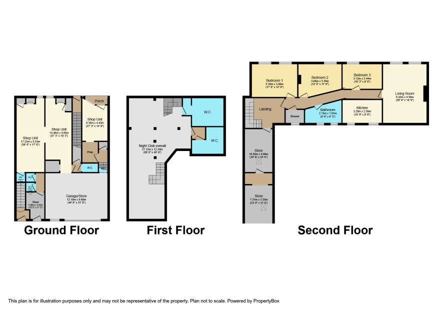 Main Shop 27'3 x 14'6 Prep Room 19' x 10'3 Store 5' x 4' Stirs up to 2 WC's