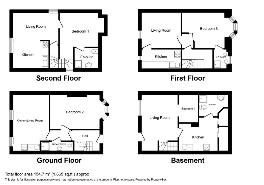 Living Room 15'3 x 10' Kitchen 10'6 x 5'3 Bedroom 9'3 x 6'6 Shower Room 7' x 6'
