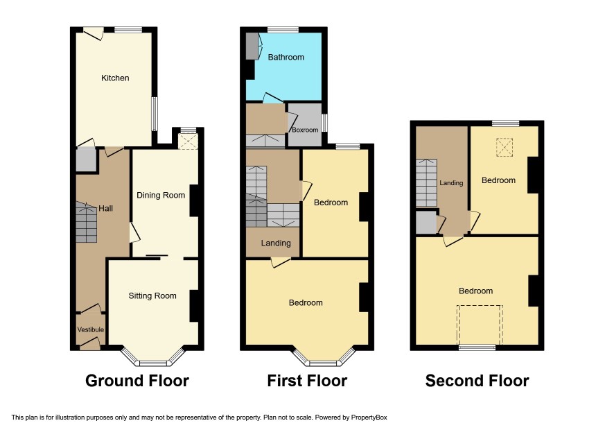 Front Bedroom with bay window 15' x 13' Rear Bedroom 13'6 x 8'6 Boxroom 6'3 x 4'9 Bathroom 9' x 8'6