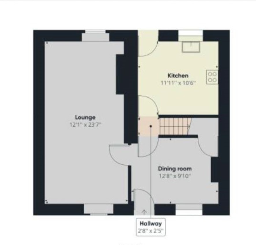 Lounge 23'6 x 12' Dining Room 12'6 x 9'9 Kitchen 12' x 10'6